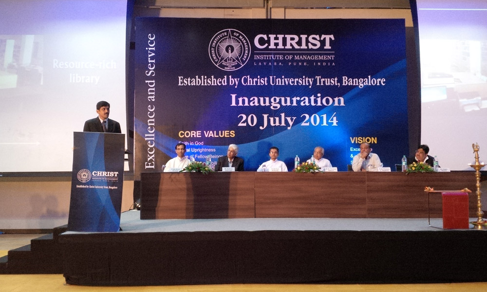 The Christ Institute of Management (CIM) campus was inaugurated at Lavasa on Sunday, July 20th 2014. The institute offers a two-year full-time PGDM courses with specialisation in Finance and Marketing.